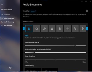 Beschreibung: Verwenden Sie die HP Elite Earbud Anwendung, um die richtige Geräuschkulisse auszuwählen und anzupassen und kalibrieren Sie Ihre Ohrhörer mit der Tuned2Me Funktion nach Ihrem Hörprofil, zeigen Sie den Akkustatus an, erfahren Sie mehr über die Touch-Steuerung und wie Sie Ihre Ohrhörer optimal nutzen.