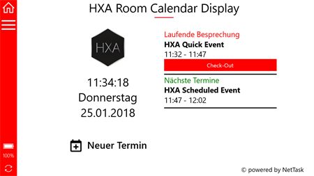 Die HXA Room Calendar Display App ermöglicht eine professionelle Buchung und Verwaltung Ihrer Räume über Tablets, Smartphones oder das eigens entwickelte HXA Room Calendar Display welches direkt bei uns oder per Amazon ( https://www.amazon.de/dp/B074MJ3YXH ) bestellt werden kann – modern, einfach und schnell.