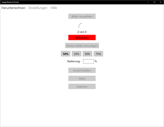 Funktionen: - Versenden der Bilder per Email - Auswahl der Bilder mittels "Teilen-Funktion" aus dem Kontextmenü - Auswahl mehrerer Bilder gleichzeitig - Beliebiges Skalieren - Anzeige der Dateigröße nach dem Skalieren - Teilen der Bilder mit anderen Apps - 'Drag & Drop' zum Hinzufügen von Bildern und Entnehmen der Resultate - Kopieren in die Zwischenablage möglich - NEU: Abspeichern in gewünschten Ordner mittels "Speichern unter" möglich - Weitere Bildformate unterstützt (.jpg, .png, .gif, .bmp, .tif)