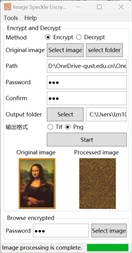 ※ elevate permission if crashes The encryption and decryption functions provided by the software are based on the password to change the pixel arrangement of the original image, and the decryption and encryption operations are performed in the opposite order. The processed image file does not save any password information, and providing wrong password decryption will further disrupt the image. Too simple passwords have the possibility of being cracked by multiple attempts. In order to improve the encryption performance, multiple encryption methods can be adopted, and the order of encryption operations and the password must be kept in mind, otherwise the image cannot be decrypted.