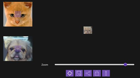 Imagine Pic contains an amazing two image merging functionality. You add two images and combine those images, so that if you have a closer look of resulted image, you will see mostly first image and if you see the same resulted image from far away, you would feel the second image. Same effect will work even if you take a print out of it.