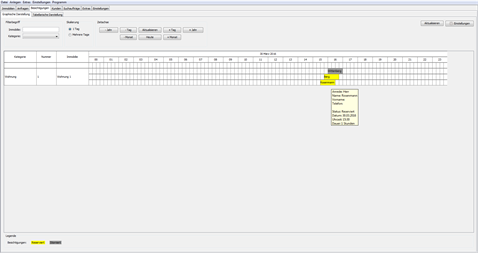 Noch eine bequeme Programmfunktion ist die Möglichkeit der Erfassung von Besuchen des Objektes von Immobilien durch potenzielle Käufer oder Mieter. Im Programm ist ein graphischer Kalender, in den Sie neue Besuche hinzufügen können, indem Sie die ganze notwendige Information angeben, integriert. Jeder Besuch kann seinen Status haben und davon abhängig kann er mit unterschiedlicher Farbe markiert sein. Die Farben des Kalenders, wie auch mögliche Status selbst, können Sie nach Ihrem Ermessen angeben. Im Kartenreiter des Objektes kann man auch alle Besuche, die dieses Objekt von Immobilen betreffen, sehen.