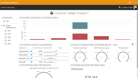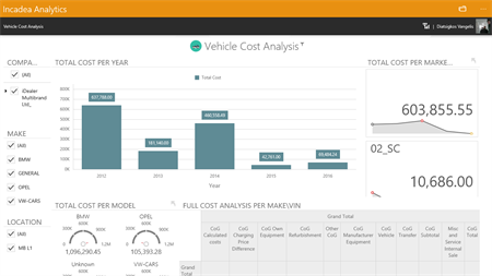 incadea Analytics is a business intelligence tool that helps business users quickly visualize and analyze their data. Supporting a wide range of visualizations from grids to charts and geolocation maps to choropleths, incadea Analytics is the ideal intelligent business advisor, providing actionable insight and effectively reducing time-to-decision to a few minutes or even seconds. The functionality of the visualizations includes: selecting visualization types (pie chart, bar chart, rotated bar chart and area chart amongst others), drilling in to a finer detail level, navigating between attributes and hierarchies, multiple data filtering, sending dashboard by email and more.