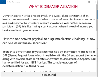 Indian Share Market is an innovative App designed to give general information about stocks and shares over the Mobile Devices.This is an esteemed effort to provide you with information, at your finger tips, regarding everything about Indian share market. -We provide share market index with details and you can have the current updates of NSE and BSE reports with out any delay . -This app provides up to date info on Sensex and NIFTY and also with top gainers and Losers in NSE. -We are bound to inform you about the top gaining companies as well as the top losers. -In this app you get a detailed description of listed companies with their symbols. -In short you get a total ABC of Indian Share Market in this app. If you find it useful we are grateful with this venture and it gives us the courage to make it better to serve you better.