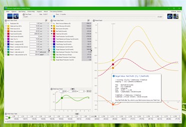With each Input Value, there are various possiblilties to raise it up linearly, squared, or exponential over time, or apply trend curves. Instantly, all Target Values like Total Cost, Revenue, and Net Profit will show their rise and fall over time. IoT Developer is based on a Universal Equation Solver.