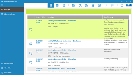 Isah Mobile Field Service ist eine App für die digitale Koordinierung des Einsatzes Ihrer Servicemonteure und dient der Erfassung des Materialverbrauchs, der Kosten und aufgewendeten Stunden. Die App ermöglicht es den Servicemonteuren, alle Aufträge, für die sie eingeplant sind, übersichtlich anzuzeigen. Dazu gehören Informationen in Bezug auf die auszuführenden Arbeiten, Störungen, die Kunden, Ansprechpartner, Servicemeldungen und Objekte. Das erleichtert den Servicemonteuren den Einsatz, da sie über alle relevanten Informationen verfügen. Auch wenn sie zeitweise keinen Internetzugriff haben. Außerdem können in Isah alle eingegebenen Informationen angezeigt werden, sodass der Innendienst für eine schnelle administrative und finanzielle Abwicklung sorgen kann.