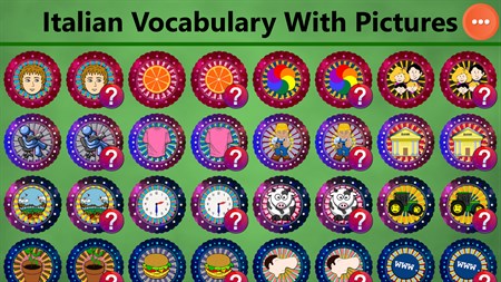 Learn Italian Vocabulary With Pictures. Thousands of Italian vocabulary with interactive pictures. Test your score after every category. The grammar and sentence structure may different from English language but simpler. Get this free app and enjoy the learning.