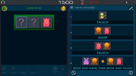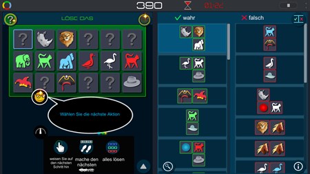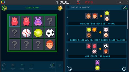 ???? und wo ist die Logik? ???? Das Spiel gibt Ihnen logische Anhaltspunkte, so dass Sie ableiten können, welches Symbol in welche Box passt
