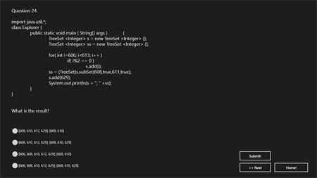 To get a trial of this app refer to the given link: http://apps.microsoft.com/windows/en-US/app/java-core-ocjp-quiz/72e5cd48-bb41-4775-a35b-885b9beb34da
