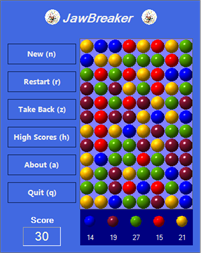 Jawbreaker is a ball matching game that displays different color balls in different random patterns. The objective is to match as many as possible to get the highest score in the least amount of time!