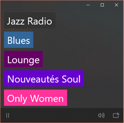 Eine einfache UWP App zum Empfangen des französischen Jazz Radios aus Lyon. Stand: Windows 10 Fall Creators Update (Herbst 2017).