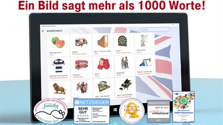 Jourist Bildwörterbuch ist vielfacher Preisträger nahmhafter Wettbewerbe: - Comenius-EduMedia-Siegel 2016 - Giga-Maus-Preis 2016 - das beste Lernprogramm - Sehr Gut im Test bei Netzsieger - Best of 2016 - Innovationspreis IT - Beste Tourismus-App 2016 - Contest der Handelskammer Hamburg