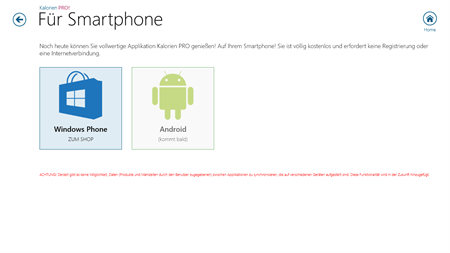 Kalorien PRO! Ist Basis von über 200 Produkte, die in mehrere zehnte der Kategorien und Subkategorien geteilt sind. An jedem Produkt wurde ein Foto und die Angaben zu Kaloriengehalt und Ernährungswerten angebracht. Mit diesem Anwendungsprogramm ist möglich, die Mahlzeiten zu komponieren, um den Kaloriengehalt zu berechnen. Es bietet auch ein Satz der Kalkulatoren (z.B. BMI, Kalorienbedarf) an, bei denen Geschlecht, Gewicht, Größe und Alter des Benutzers berücksichtigt wurden. Achtung! Internet-Verbindung nicht erforderlich!