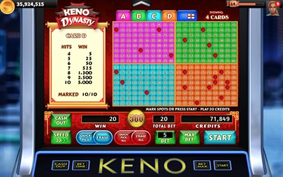 Keno Dynasty multi-card celebrates the historical origins of Keno dating back to the provinces of China over 2,000 years ago.