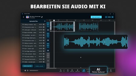AI WavePad Editor ist die ideale Wahl für die Erstellung erstklassiger Audioprojekte. Egal, ob Sie Anfänger oder fortgeschrittener Benutzer sind, diese KI-gestützte Anwendung erfüllt alle Ihre Anforderungen an die Audiobearbeitung. Erleben Sie noch heute die überlegene Audiobearbeitung!
