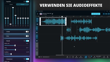 Einige der wichtigsten Merkmale sind: - AI-Rauschunterdrückung - Mehrspurbearbeitung - Unterstützte Formate: MP3, AAC, WAV, M4A, WMA, OGG, FLAC, M4R, MIDI - Audiofragmentmanipulation, Wiederholen, Rückgängig machen, Ausschneiden, Zuschneiden, Kopieren, Einfügen, Entfernen - Einblenden, Ausblenden, Überblenden, Stille - Schallpegel- und 3-Band / 10-Band-Equalizer-Einstellung - Effekte: Kompressor, Flanger, Delay, Pitch, Chorus, Verzerrung, Hall, Pan/Expand