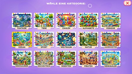 ???? Über 1500+ Puzzles in einer Galaxie kinderfreundlicher Kategorien wie Fantasy, Tiere, Buchstaben, Ozeane und Dinosaurier!