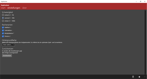 Mit dieser App haben Sie Spaß beim Kopfrechnen! Verschiedene Schwierigkeitsstufen und eine Auswahl aus den Rechenarten machen den Zeitvertreib leicht und zugleich auch schwer! Der Kopfrechner bringt Sie dazu, ihre Zeit sinnvoll zu nutzen :)