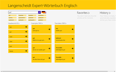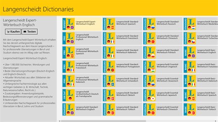 Die App ermöglicht es, einfach und schnell durch die 49 Langenscheidt-Wörterbücher zu navigieren und dabei die innovativen Such-, Lern- und Übersetzungsfunktionen auszuprobieren. Um alle Vorteile eines digitalen Wörterbuchs nutzen zu können, empfehlen wir den Kauf der erweiterten Standard-, Professional- oder Expert-Wörterbücher.