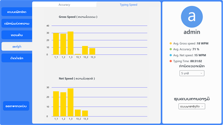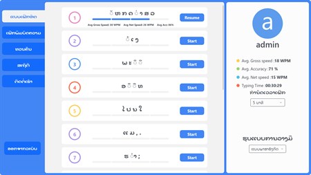 Lao Typing Practice ແມ່ນໂປຼແກຼມເຝິກພິມພາສາລາວເພື່ອໃຫ້ທ່ານສາມາດພິມພາສາລາວໄດ້ໄວແລະມີປະສິດຕິພາບຂຶ້ນໂດຍທີ່ທ່ານບໍ່ຈຳເປັນຕ້ອງເບິ່ງຄີບອດຕະຫຼອດເວລາ. ເຊິ່ງປະກອບມິ 14 ບົດເຝິກຫັດ, ແຕ່ລະບົດເຝິກຫັດຈະໃຊ້ເວລາເຝິກພຽງ 20 ຫາ 40 ນາທີເທົ່ານັ້ນ.