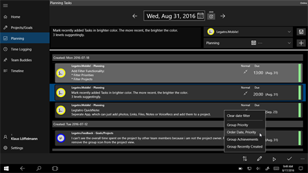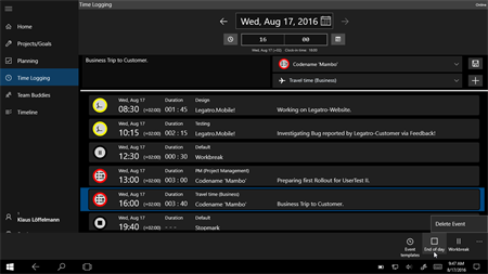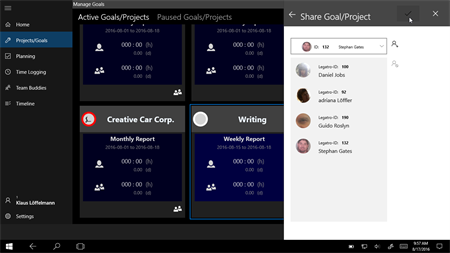 Legatro BETA - Track times, and manage team and projects: Do you need project based time recording? Do you want to work on projects and goals with your team? Turn your ideas, tasks and duties into Projects and Achievements, and get ready for a new way to maintain and manage them. With Legatro you organize all of this in your own, customizable way. Create new projects and goals, and organize them with colors and labels for an easy and quick access. Identify and define the achievements to attain your goals. Work on tasks for projects/goals and achievements, time-record what you’ve done, and have all information available on every Tablet, Phone and Desktop you’re working with Windows 10 - of course with full Windows Mobile Continuum support!