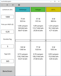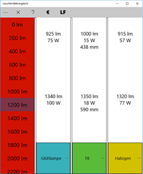 Dies ist eine App für den verglichen aller gängigen Leuchtmittel. Man kann Glühlampen, LED, Leuchtstoffröhren, Halogenlampen und andere fiel vergleichen. Es kann auch eine Kostenvergleich durchgeführt werden kann.