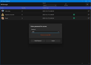 Use groups to manage your notes. View the notes associated with each group. Custom group management (built-in 152 icons). Each group can set an access password, and the notes can be accessed after the password is successfully verified.