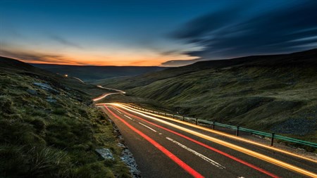 In diesem zehnteiligen Premium-4K-Bilderset befinden Sie sich nachts auf beleuchteten Straßen, fotografiert mit langer Belichtungszeit. Diese kostenlosen Bilder für Windows 10-Designs dürfen nur als Desktophintergrund verwendet werden.