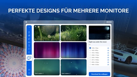 Die App bietet eine reiche Auswahl an thematischen Kategorien und Auflösungen in HD-Qualität für diejenigen unter euch, die sehr wählerisch sind, wenn es um ästhetische Entscheidungen geht, und eine einfache und bequeme Erfahrung für diejenigen, die einfach nur einen Standard-Startbildschirm ein wenig aufhellen wollen. Und wenn du mehr als einen Bildschirm hast, gibt es wunderschöne Kombinationen für zwei, drei oder mehr Monitore! Umgebe dich mit Schönheit, du bist nur ein paar Klicks von deiner perfekten Hintergrundoption entfernt und fertig.