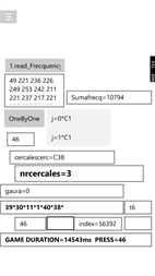 4. Updating the FF frequency file, the P7 insect is made by typing the buttons: 1.readF - read the file 2.FillF -filling the matrix 3. Completion with the 6 numbers of a new draw Then put all the changes to the numbers that were extracted for example: number 1 was extracted. Frequency file who had 212 appearances will now have 213 appearances and after entering the extraction position, ie 1 in the box in pressing the 3 / old - new button command will appear in the fold box the old value of the occurrence frequency 212, and at fnew the new value of the occurrence frequency will appear 213. Also in the frequency matrix for all 49 numbers, at position 1 will appear 213, in a duller color. After entering all the extracted numbers one by one, frequency file update maneuvers: 4.FileF1 - NEW 5.cF2 6.wF2 7.rF2 The modified file 49 213 233 ...., appears on the screen. 8.FINAL7 5. Determine the new sequence of 6 numbers with the "+ method - P3x, after reading the file, and then pressing the OneByOne button - or P3aparatZAR, pressing the buttons in turn: "+ 1.REZ 2.Frequency 3.XX 4.XXXX and the 5.Automatic button until the desired seventy of WIN numbers is obtained