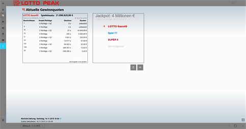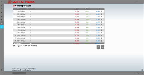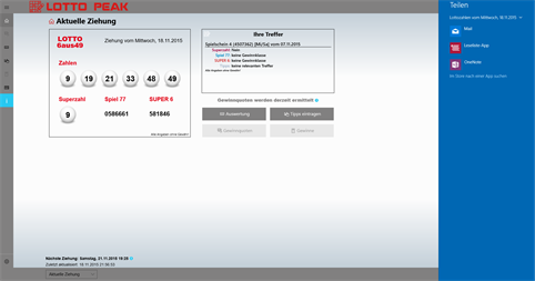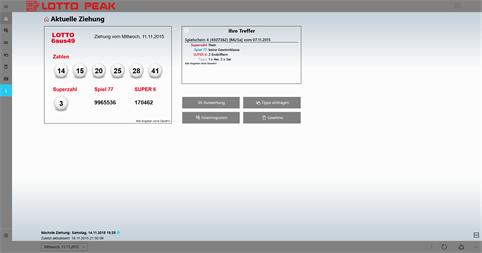 Die Lotto Peak-App zeigt Ihnen nicht nur zeitnah die aktuellsten Lottozahlen an, sondern kann die Lottodaten auch mit Ihren eigenen Tipps abgleichen und eventuelle Gewinne anzeigen und dies sogar bis zu 12 Monate rückwirkend.