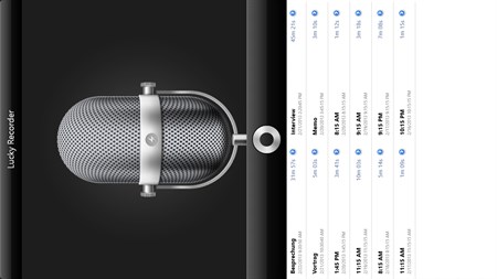 Lucky Recorder ist ein professionelles Diktiergerät. Es ist eine einfache, Spaß und einfach zu bedienen Audio-und Voice-Recorder. Verwenden Sie es, zu den Sitzungen, Vorträge und persönliche Notizen aufzeichnen, ohne zeitliche Begrenzung. Sie können die Wiedergabe und teilen Sie Ihre Aufnahmen.