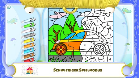Zeichnen nach Zahlen ist ein interaktives Malbuch für Kinder. In diesem Mathematikspiel lernen Kinder die Zahlen und lösen einfache mathematische Beispiele. Das Programm entwickelt das Gedächtnis, die Aufmerksamkeit, die Vorstellungskraft und das logische Denkvermögen. Jungen und Mädchen aller Altersstufen lieben Farbe. Der einfache Ausmalmodus eignet sich selbst für die Kleinsten sowie für Kinder im Kindergarten- und Vorschulalter. Die simplen und leicht zu erkennenden Bilder lassen sich einfach ausmalen. Wählt das Kind die falsche Form, wird es aufgefordert, die richtige Zahl zu wählen. Deshalb werden die Bilder immer korrekt ausgemalt und das Kind kann sich die Zahlen schnell einprägen. Die Kinder wählen die Farben nicht nur nach Zahlen, sondern auch nach geometrischen Figuren und Piktogrammen. Es ist für ein Kind einfach, zwischen Kreis, Diamant und Dreieck zu unterscheiden. Den Kindern im Schulalter wird der komplexere Ausmalmodus gefallen. In diesem Modus ist das Bild in eine Vielzahl von Elementen aufgeteilt. Anfangs ist es schwierig zu bestimmen, was auf dem Bild ist. Ältere Kinder können den Schwierigkeitsgrad noch erhöhen und Additions- und Subtraktionsaufgaben hinzufügen. Die Kinder lösen die Beispiele und wählen die richtigen Antworten, um das Bild auszumalen. Dabei üben sie das schnelle Kopfrechnen. Wer gerade das Alphabet lernt, kann die Farben nach Buchstaben auswählen. Das Malen nach Zahlen bereitet die Kinder auf die Grundschule vor. Alle vorgegebenen Farben können verändert werden. Dadurch wird das Malen noch interessanter und lustiger. Wenn die Kinder auf den Farbtopf drücken, öffnet sich die Palette und sie können ihre Lieblingsfarbe wählen. Im Zahlenmodus können alle schattierten Bereiche des Bilds verändert werden. Genießen Sie den Spaß, das Farbschema nach Ihrem Geschmack zu verändern. Testen Sie das Programm gleich jetzt!