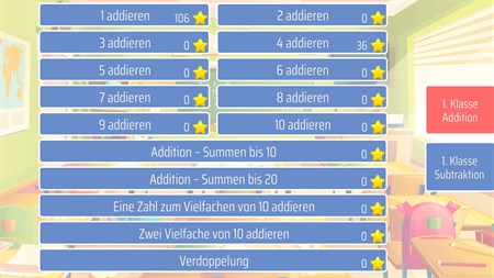 Mathe spielerisch lernen und üben. Dank handschriftlicher Zahleneingabe ist es möglich, das Ergebnis einfach auf den Bildschirm zu schreiben. Folgende Aufgabenbereiche stehen zur Verfügung: