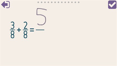 Mathe spielerisch lernen und üben. Dank handschriftlicher Zahleneingabe ist es möglich, das Ergebnis einfach mit dem Finger auf den Bildschirm zu schreiben. Folgende Aufgabenbereiche stehen zur Verfügung: