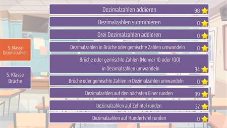 Dezimalzahlen: Dezimalzahlen addieren Dezimalzahlen subtrahieren Drei Dezimalzahlen addieren Dezimalzahlen in Brüche oder gemischte Zahlen umwandeln Brüche oder gemischte Zahlen (Nenner 10 oder 100) in Dezimalzahlen umwandeln Brüche oder gemischte Zahlen in Dezimalzahlen umwandeln Dezimalzahlen auf den nächsten Einer runden Dezimalzahlen auf Zehntel runden Dezimalzahlen auf Hundertstel runden