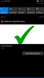 Introducing the first game on Windows 10 that you can play anywhere. No matter what you are doing, just pull down to reveal you notifications and you can start playing anytime. See how well you can cope with the 12 x 12 multiplication table!
