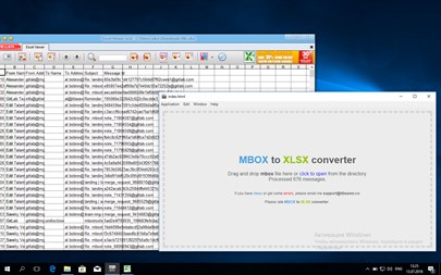 This application is designed to convert e-mail export file(.mbox) to Microsoft Excel Open XML Spreadsheet(.xlsx). Drag and drop or open file to easily convert them.