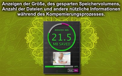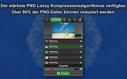 Das Hauptziel des "Mini PNG Lite" ist es, die Größe der PNG-Dateien zu verringern, um Ihnen viel Platz zu sparen. Verwenden Sie dieses Tool, um PNG-Dateien für die Anwendungen, Websites, e-Mails, USB-Laufwerke usw. zu komprimieren. "Mini PNG Lite" Funktionen: - Verfügt über den stärksten PNG-Komprimierungalgorithmus (mit Verlusten), der es erlaubt mehr als 80% der PNG-Dateninhalt zu reduzieren. - Drag & Drop. Ziehen Sie die PNG-Bilder und Ordnern mit PNG-Dateien in das Anwendungsfenster. - Das Tool bewahrt die ursprüngliche Datei-und Ordnerstruktur, einschließlich Bilder, Texte und andere Dateien, für das spätere Kopieren. - Betrachten Sie die PNG-Dateien vor der Komprimierung mit dem eingebauten Viewer. - Während der Komprimierung zeigt das Tool die Menge des gespeicherten Platzes, die Anzahl der Dateien und andere nützliche Informationen an. - Unterstützung der Stapelverarbeitung. - Unterstützung für Komprimierung der hochauflösenden Bilder. - Spezieller Algorithmus zur Komprimierung von Schwarzweiß-Bildern. - Fähigkeit, den Zielordner für die komprimierte PNG-Dateien zu ändern. - Nachdem der Komprimierungsvorgang abgeschlossen ist, meldet sich das Tool und öffnet den Zielordner mit fertigen Dateien. -Und vieles mehr.