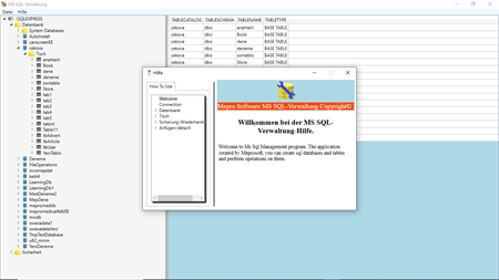 Benutzerfreundliche Desktop-Anwendung zum Erstellen und Bearbeiten von Datenbanken und Tabellen auf dem SQL-Server.