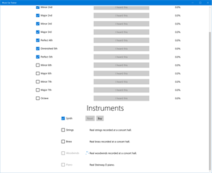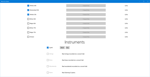 Recordings of real instruments are available as downloadable content to allow proper training on instruments with different audio spectra. This app can be used to learn the sound of real orchestral instruments and sections as real brass, strings and woodwinds sections have been recorded.