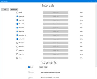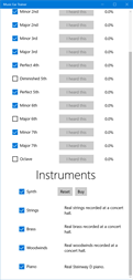 Two notes are played simultaneously and the user determines the interval between them. The user can select which intervals to train with.