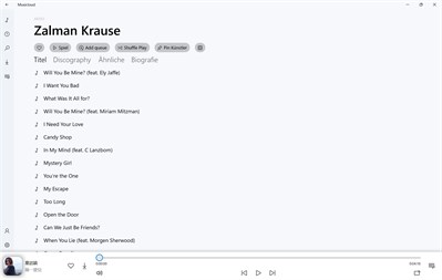 Eigenschaften: - Suchen Sie nach einem beliebigen Titel, Sänger, an dem Sie interessiert sind, und spielen Sie kostenlos Songs - Zeigen Sie die Alben des Künstlers an und spielen Sie sie ab - Holen Sie sich die Top-Tracks und Künstler der letzten Zeit und spielen Sie sie online - Shuffle, Loop-Playlist: Die beste Art, unsere Lieblingssongs zu genießen, besteht darin, sie immer wieder zu wiederholen - Großartige und einfach zu bedienende Benutzeroberfläche mit atemberaubender, schneller Erfahrung beim Musikhören - Laden Sie die Musik herunter