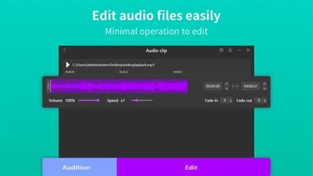 Vielleicht die einfachste Software zur Bearbeitung von Audiomusik, die Sie je gesehen haben! Anfänger können es auch einfach in einem Schritt erledigen. Die benutzerfreundliche Musikbearbeitungsoberfläche sieht jedes Bild und jeden Ton der Audioproduktion klar und realisiert auf einfache Weise verschiedene Audiobearbeitungen und -produktionen. Es ist eine hervorragende Anwendung zum Bearbeiten, Ausschneiden und Zusammenführen von Audiodaten sowie zu 100% benutzerfreundlicher Musikeditor- und Klingelton-Software.