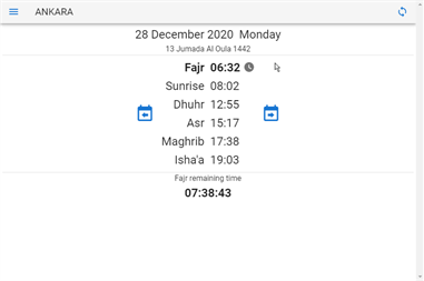 Free, ad-free, open-source, and sleek Muslim Praying Times app. Pulls time information from the official website of the Turkish Directorate of religious affairs over the internet.