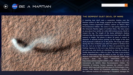 The Be A Martian app lets you experience Mars as if you were there! Take part in discovery as it happens and join a community of worldwide explorers!