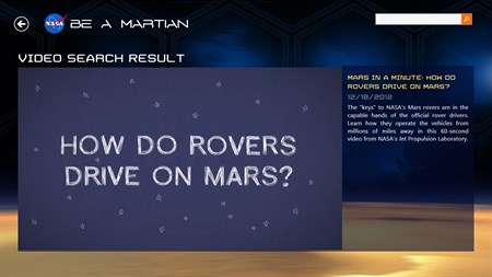This app offers exciting ways to take part in discovery and learn about NASA's Mars missions. You can also view Mars images and videos, and read the mission news.