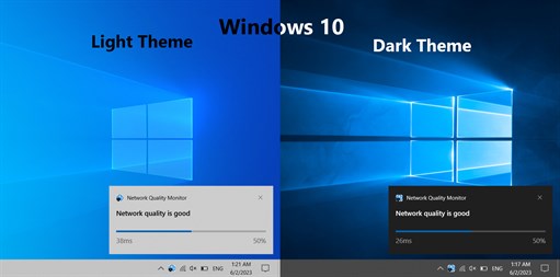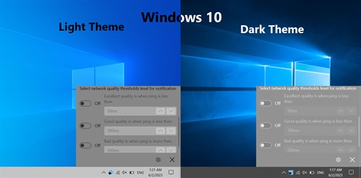 Features: ✅ Displays real time network quality chart ✅ Allows to receive notification about 3 configurable network quality levels (excellent, good and bad) based on configurable thresholds ✅ Automatically start with Windows ✅ Low system resource consumption ✅ Multiple language support with automatic detection • English (default and application can be forced to use it) • French • German • Polish • Ukrainian • Russian ✅ Modern design • Windows 11 design for Windows 11 systems • Windows 10 design for Windows 10 systems • Windows stylish icons and animations • Dark and Light themes with automatic detection • Multiple resolution and DPI support