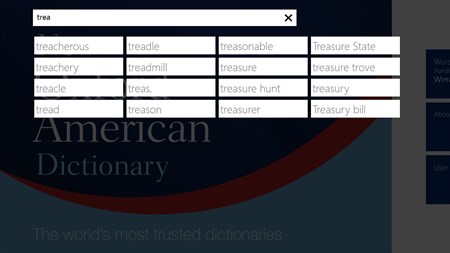 Featuring autocomplete search to help you find words quickly by seeing search predictions that might be similar to the search terms you're typing. The search also allows various search options as: