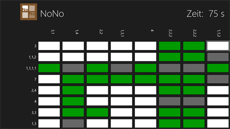 Kleines, grossartiges Puzzle-Denkspiel für zwischendurch. Leichtgewichtig erstellt. Durch Angaben von horizontalen und vertikalen Wertedaten können die Blöcke gefüllt werden.